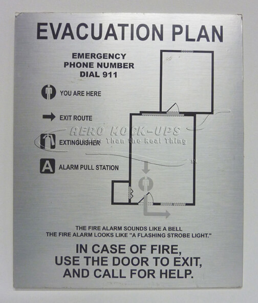 Sign, flat - "Evacuation Plan" (Drawing). Black on silver foam board. Artwork – Not cleared.